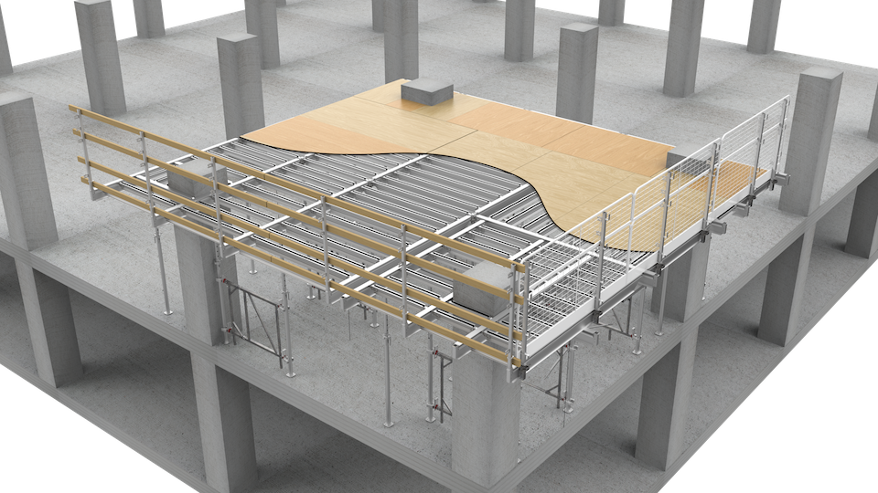 With its 12‘ cantilever beam, Flexi Deck offers the flexibility to create a spacious, stable grid for concrete pours, while also providing a robust work platform that extends beyond the leading edge. It ensures both strength and safety on every project.